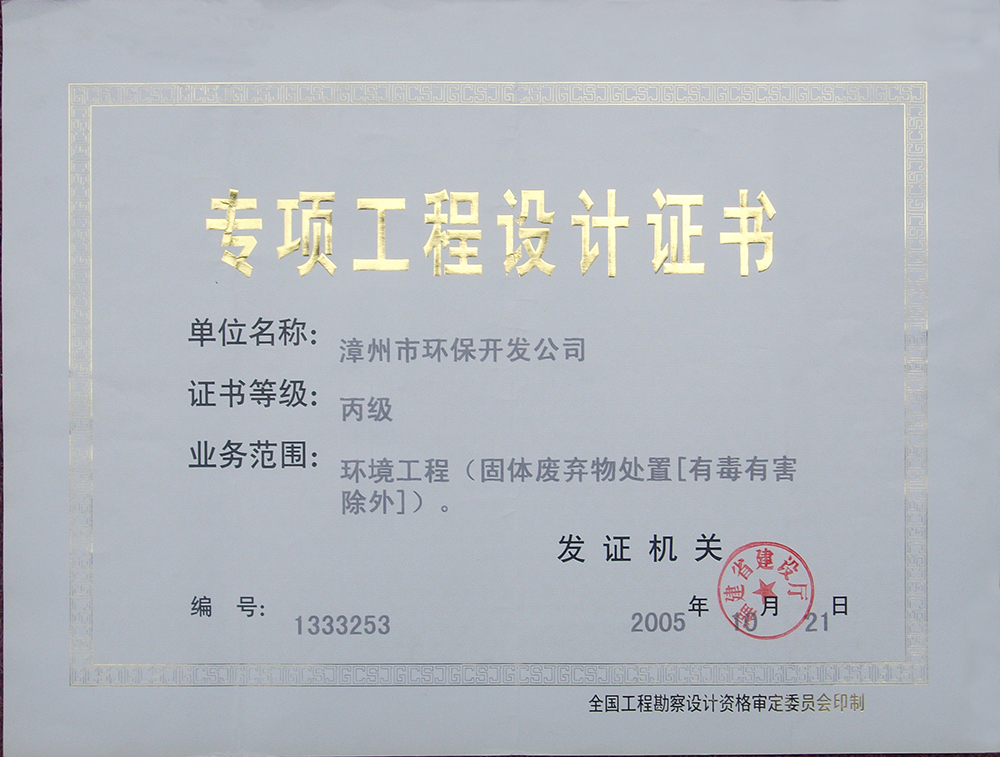 1、環(huán)境工程(廢水、廢氣)專項(xiàng)工程設(shè)計(jì)乙級(jí),證書(shū)編號(hào):3417;